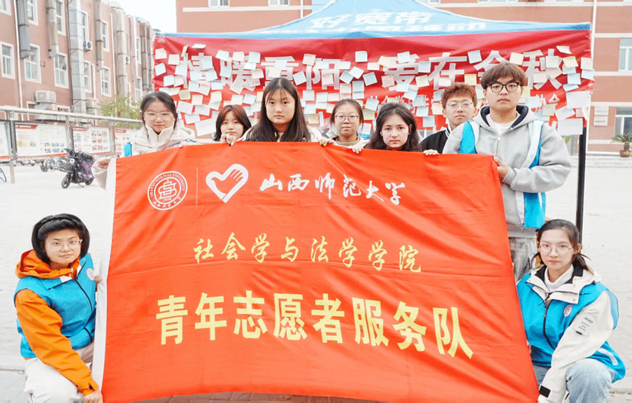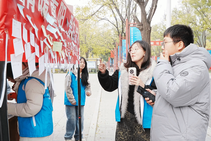 青年志愿者协会在南区六号楼前举办“情暖重阳,爱在金秋”主题宣传活动。