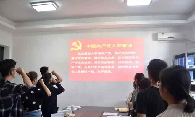 最后,全体党员在老师的带领下,重温了入党誓词。在铿锵有力的誓词声中,每位党员做出承诺,要不忘初心、牢记使命,担负起学生党员的担当与责任。