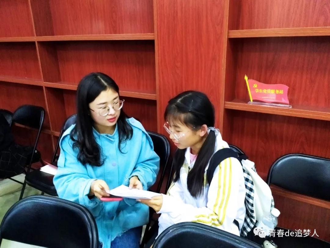 服务过程中,党员和新生采取面对面交流的方式,围绕“对党的认识、入党动机、自身表现”三个方面展开交流。在轻松融洽的氛围中,党员们深入了解了新生们对党的思想认识,并结合自身实际情况,从理论与实践两个方面帮助大家更好地认识了解党组织,端正入党动机,树立“为人民服务”的理想。同时,针对新生们提出的关于课堂适应、专业认识、生活安排、就业前景等问题,党员们结合自身情况给出相应的建议,以帮助新生顺利完成角色转换,更快更好适应大学生活。