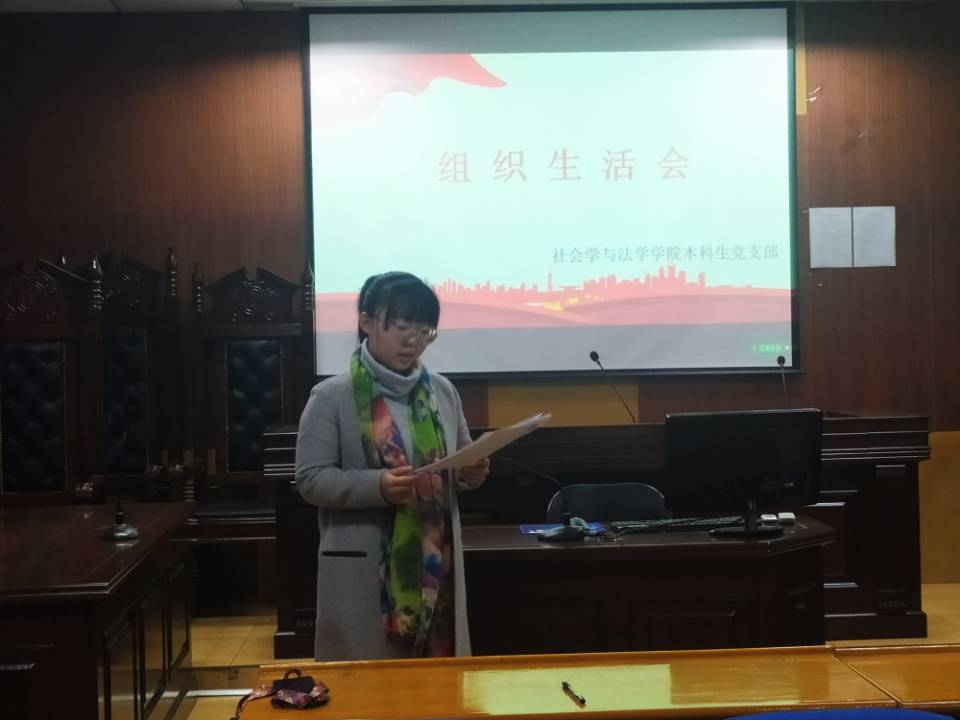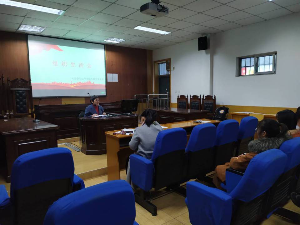 本科生党支部在模拟法庭召开了组织生活会。院党委书记李菊花老师应邀出席,全体党支部成员参加会议,宣传委员许岩同志主持本次会议。