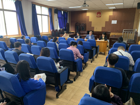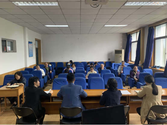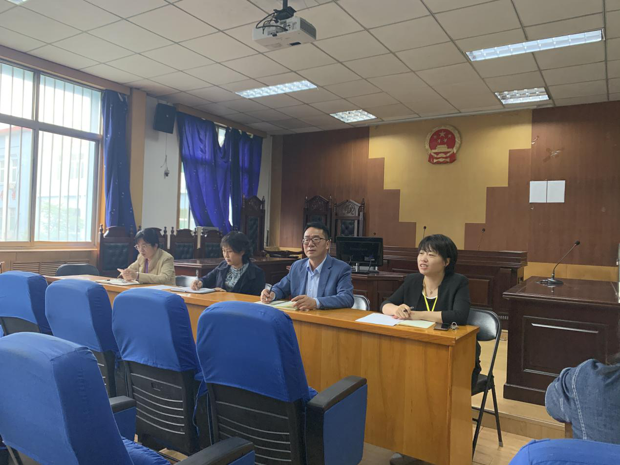 于5月11日在模拟法庭召开工作会议,相关教职工参加会议。