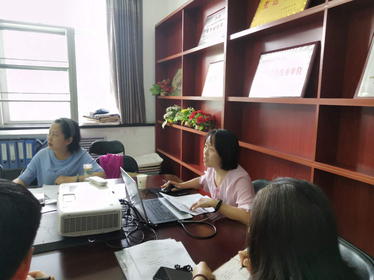 教学、考试情况进行了详细的介绍,肯定了本学期各位老师的辛勤工作,希望通过此次交流总结线上教学考试经验,提升线上教学质量。