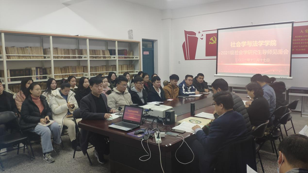 的社会学学科发展史、导师基本情况作了简单介绍,并对2021级研究生提出了三点希望:一是要扎实专业基础知识,以优异的成绩报答国家、学校及学院乃至父母养育培育之恩;二是强身健体,拥有健康的身体和心理;三是要修身养性,妥善处理好与室友、同学、导师的关系。随后,各位导师分别介绍了自己的学历经历和研究方向,每位研究生也介绍了个人的本科专业及未来的研究主题。