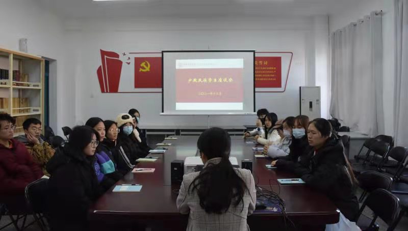 于一号楼三层多功能会议室举行少数民族座谈会,会议由院党委副书记于宝钗主持,全体少数民族学生参加。