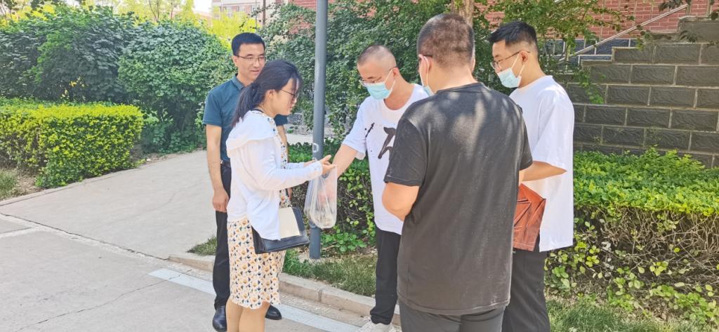 院党委李永强老师、2022届毕业班辅导员乔巧巧将一颗颗包裹着关爱与祝福的粽子送到留校毕业生手中。老师们鼓励大家要多学习优秀传统文化,用传统文化的精髓滋养精神世界,积极投身到新时代文明实践中去,做社会主义事业的合格建设者和接班人。