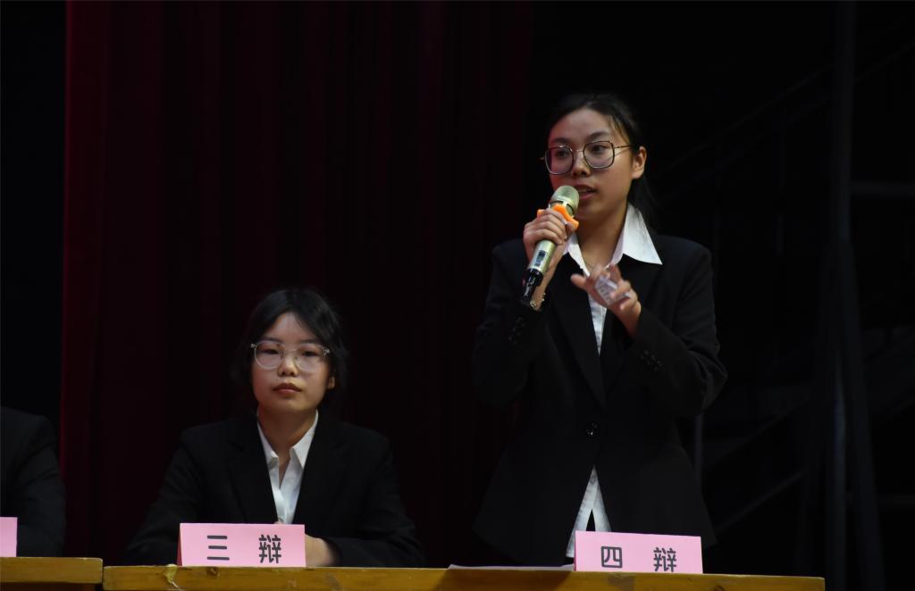 其次,主席对决赛规则进行宣读。在双方辩手进行自我介绍后,辩论赛正式开始。辩论中,正反方一辩首先分别进行立场陈述。之后,双方辩手就陈词表达的观点向对方辩手展开了尖锐的质疑与反驳。正方二辩、三辩选手来势汹汹,打出了己方的气势,反方二辩、三辩也是不遑多让,针对正方的论点展开自己的多维批判。斡旋良久之下,熹微的共鸣在辩手与观众之间联结起来。