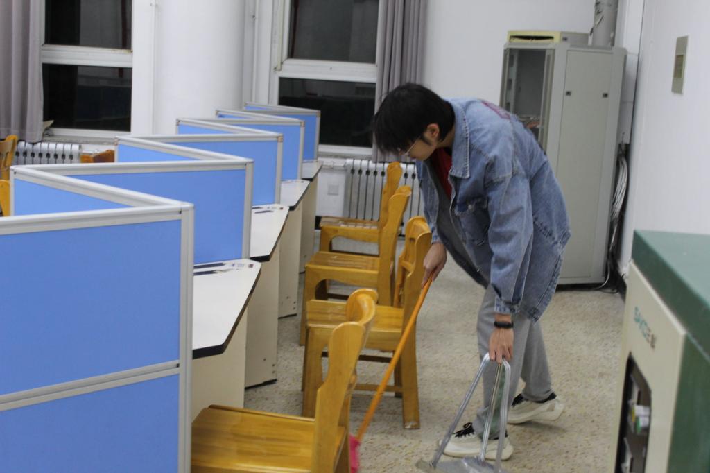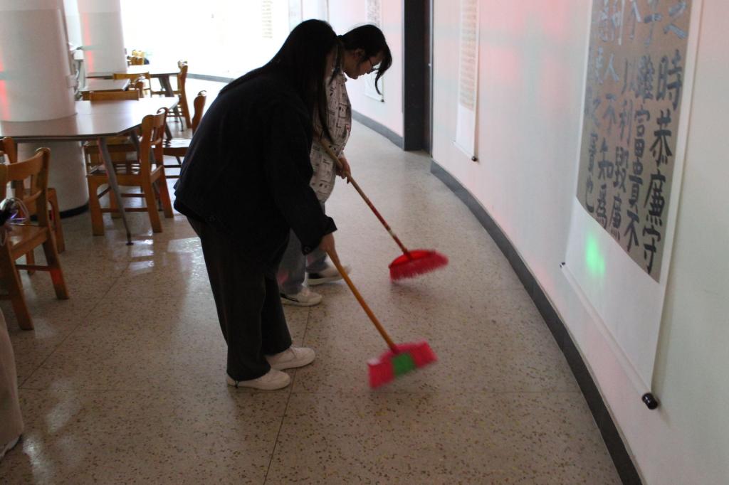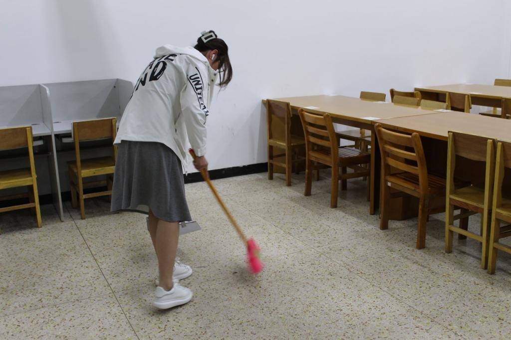 志愿者们各司其职,积极踊跃地完成扫地、拖地、整理书桌等各项工作,最终圆满地完成了这次任务。