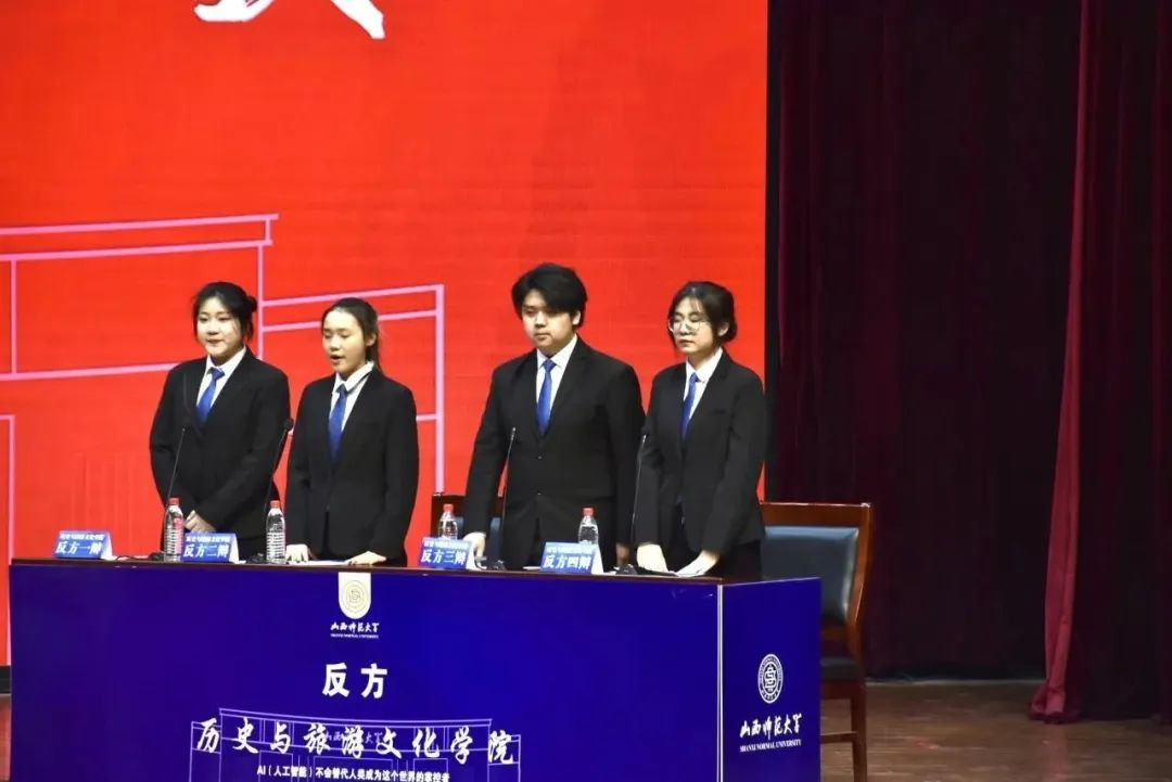 社法辩论队持正方观点:人工智能(AI)会替代人类成为这个世界的掌控者,历史与旅游文化学院辩论队持反方观点:人工智能(AI)不会替代人类成为这个世界的掌控者。