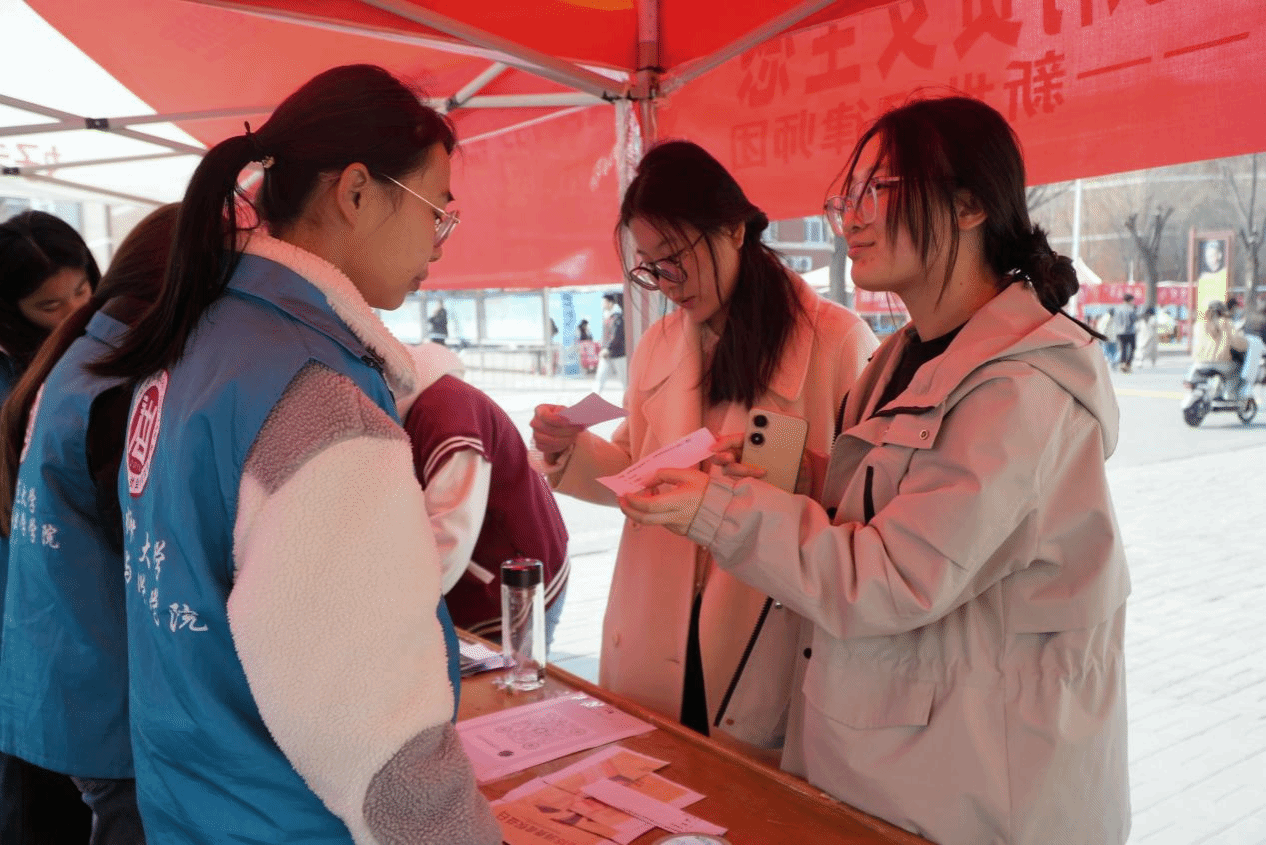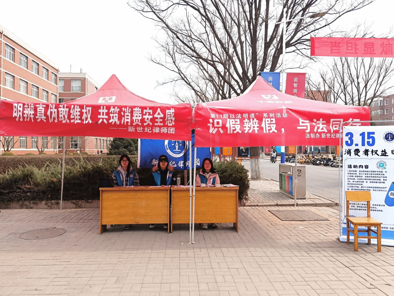 新世纪律师团于3月15日在南区六号教学楼前开展了“识假辨假,与法同行”主题活动。