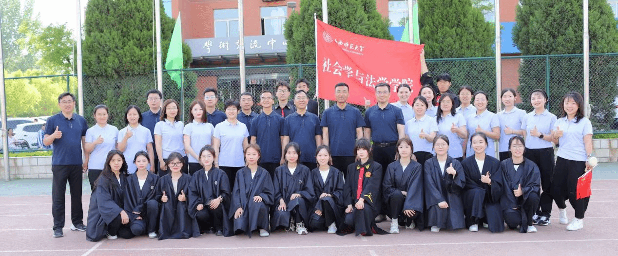 师生身着统一服装,伴随着慷慨激昂的《运动员进行曲》,迈着整齐有力的步伐,高喊“社情绵长,法韵铿锵,挥汗赛场,势不可当”口号走入赛场。