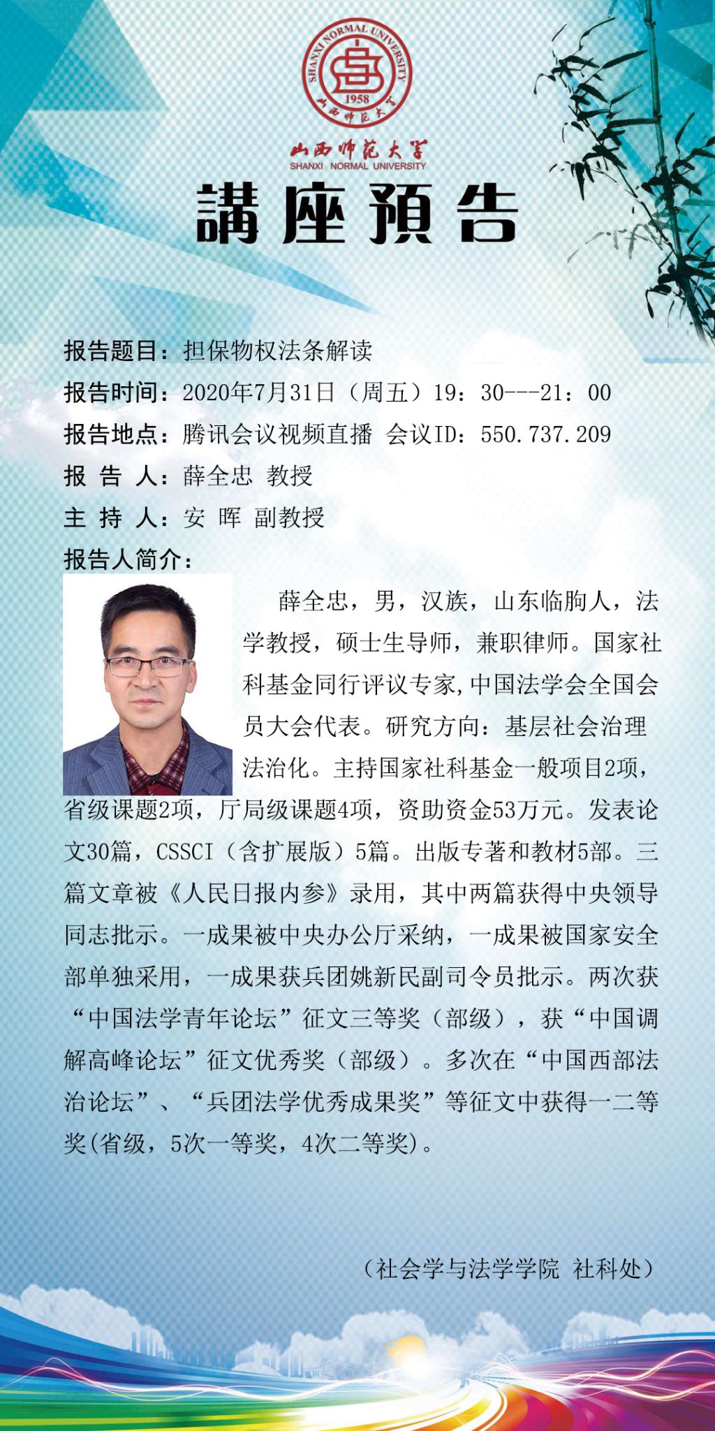 禁漫屋 薛全忠教授学术报告预告
