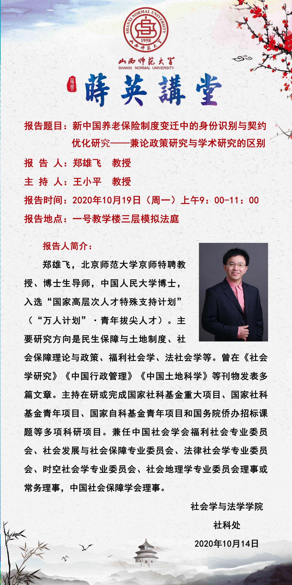 北京师范大学政府管理学院郑雄飞教授应邀为禁漫屋 作学术报告