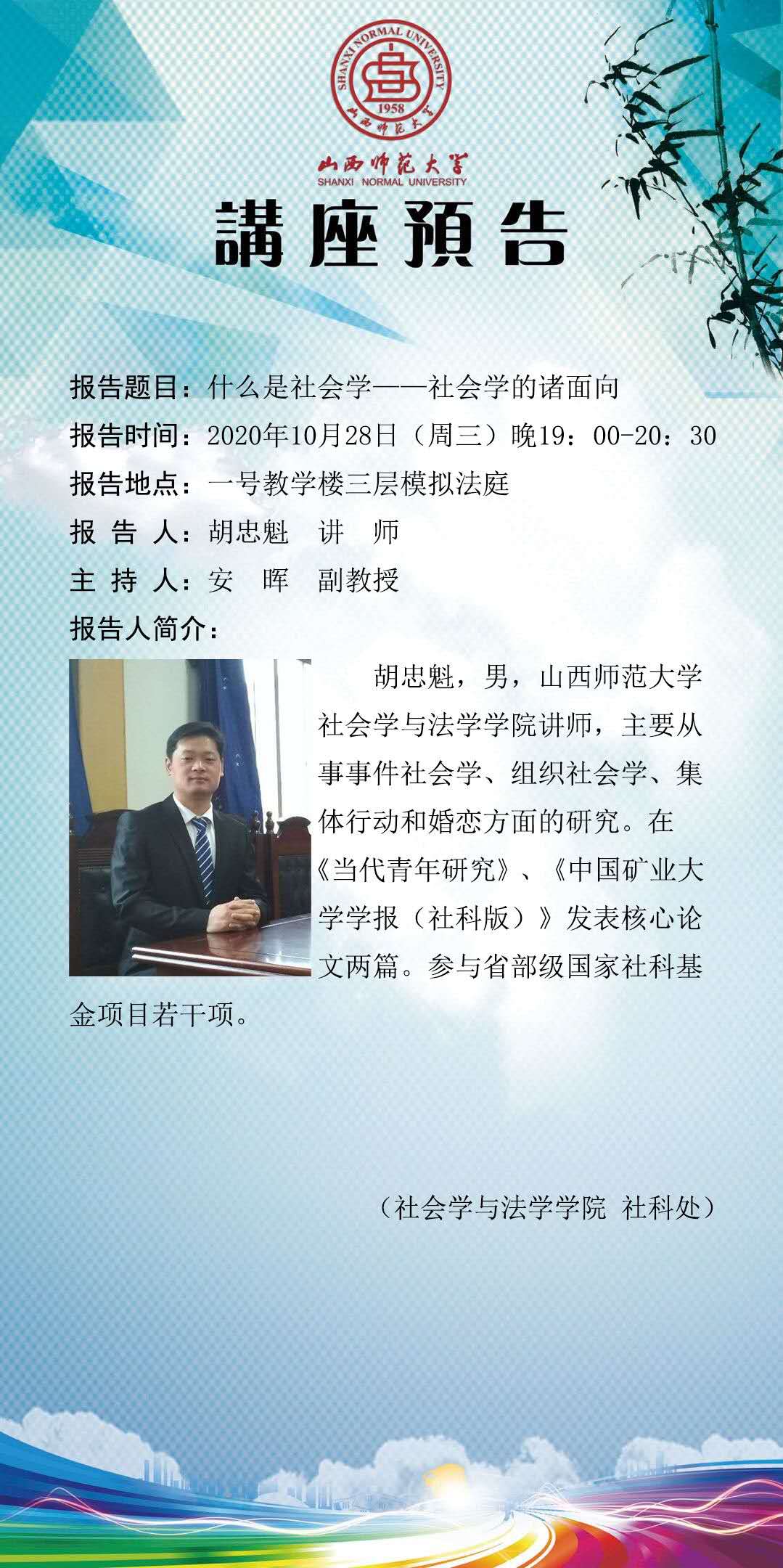 禁漫屋 胡忠魁老师学术报告预告
