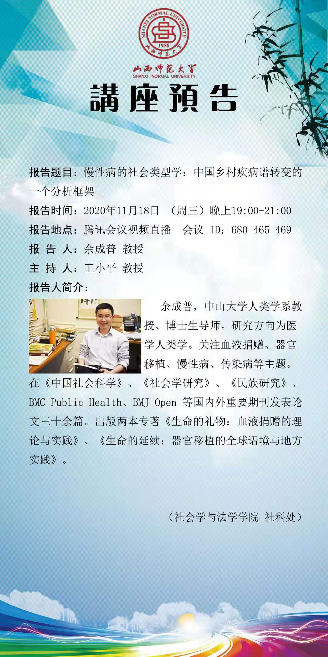 中山大学人类学系余成普教授应邀为禁漫屋 作学术报告