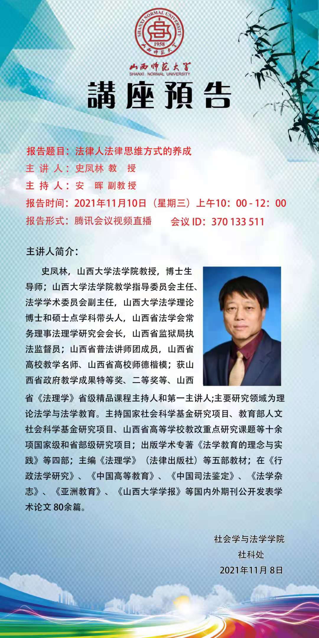 山西大学法学院史凤林教授应禁漫屋 邀请举办视频直播讲座