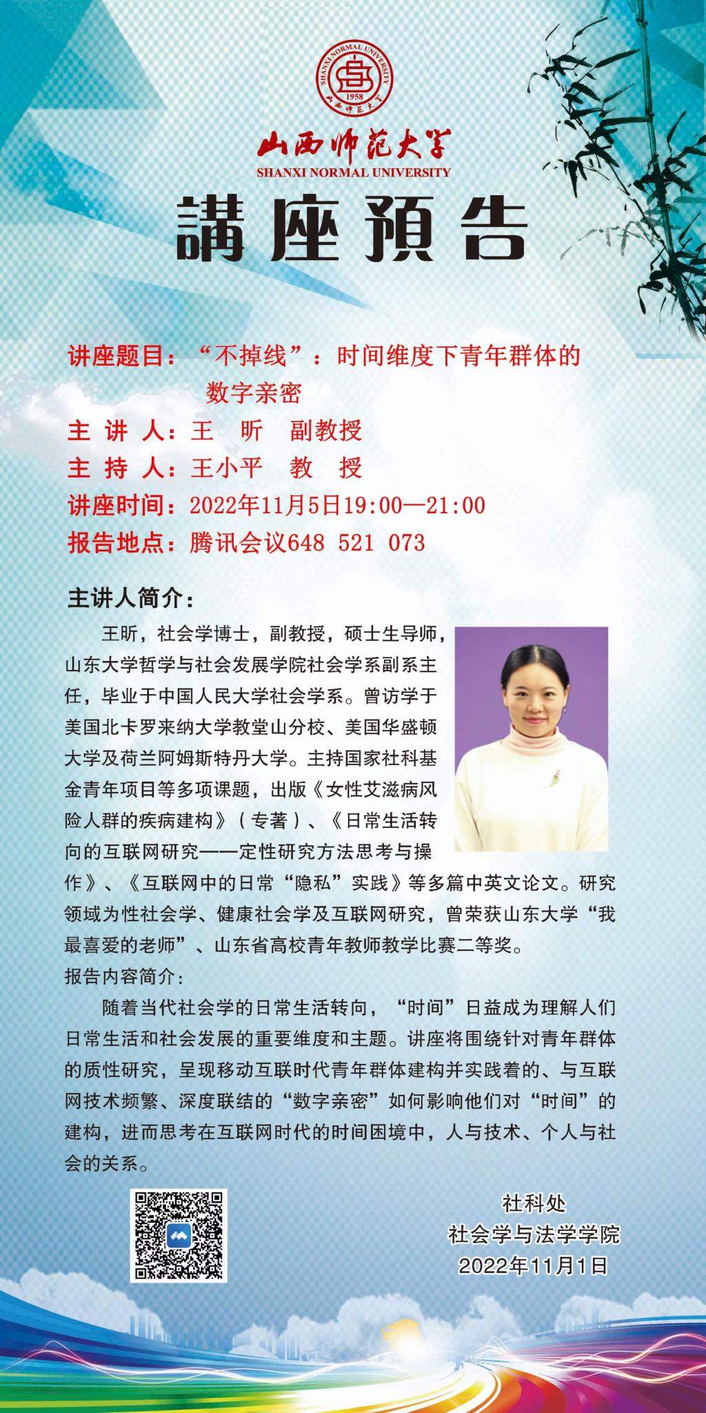 山东大学哲学与社会发展学院王昕教授应邀请举办视频直播讲座