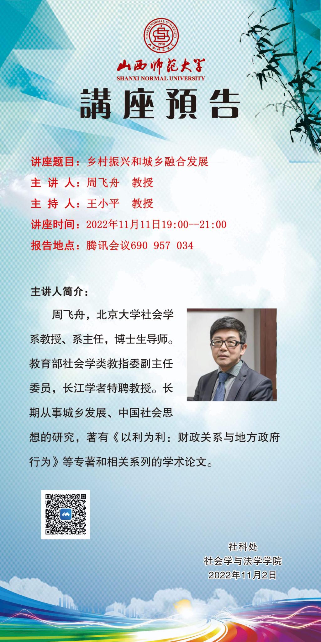 北京大学社会学系周飞舟教授应邀请举办视频直播讲座