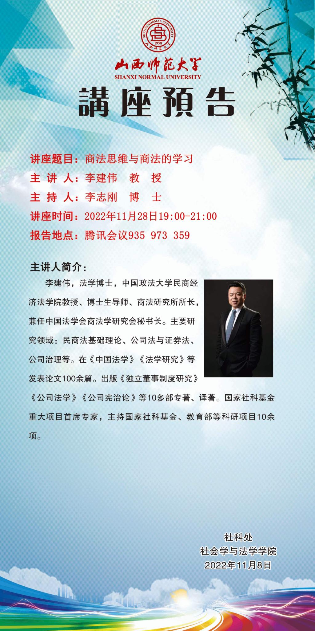 中国政法大学民商经济法学院李建伟教授应邀请举办视频直播讲座