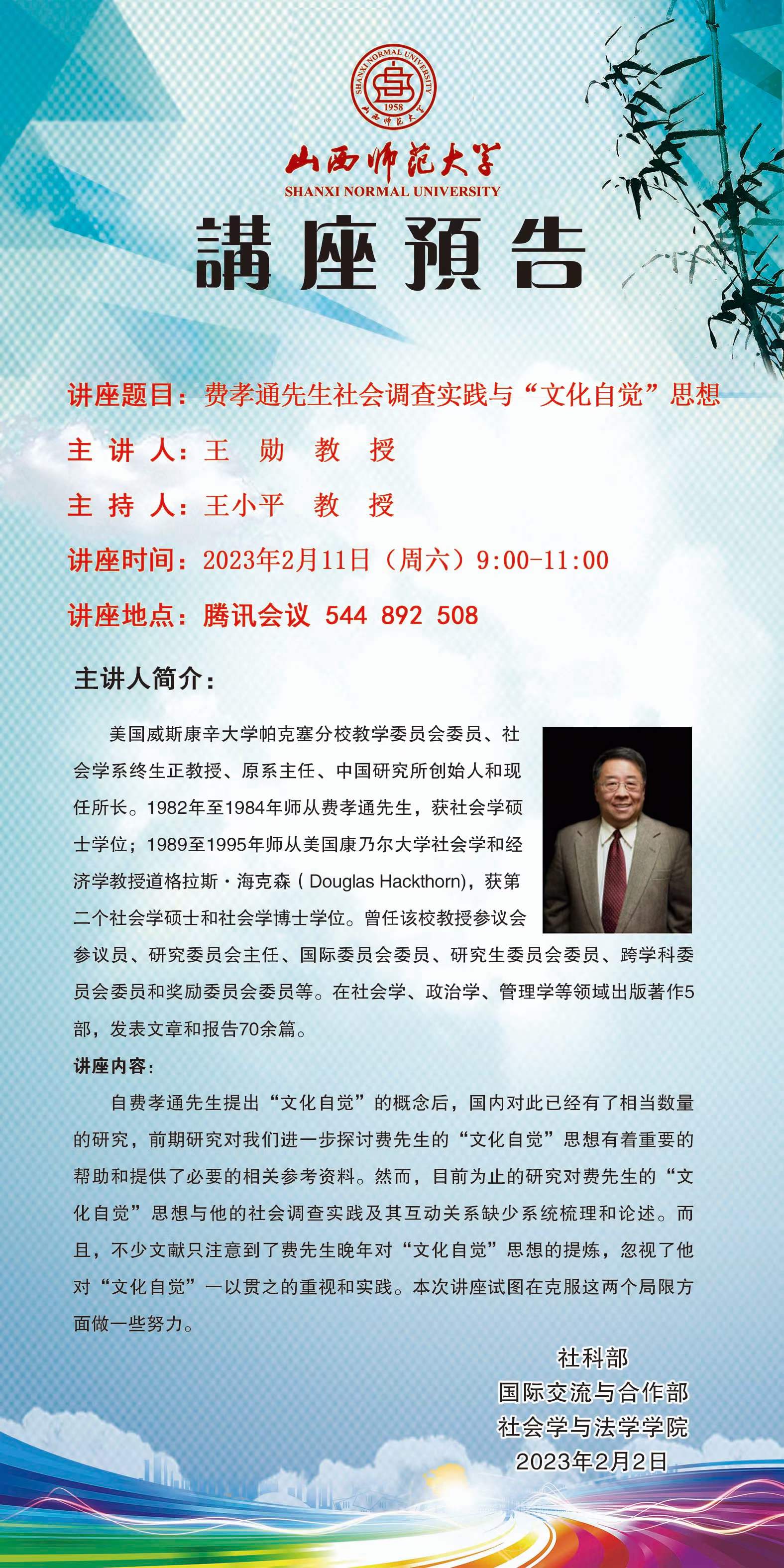 美国威斯康辛大学帕克塞分校社会学系王勋教授应邀请举办视频直播讲座