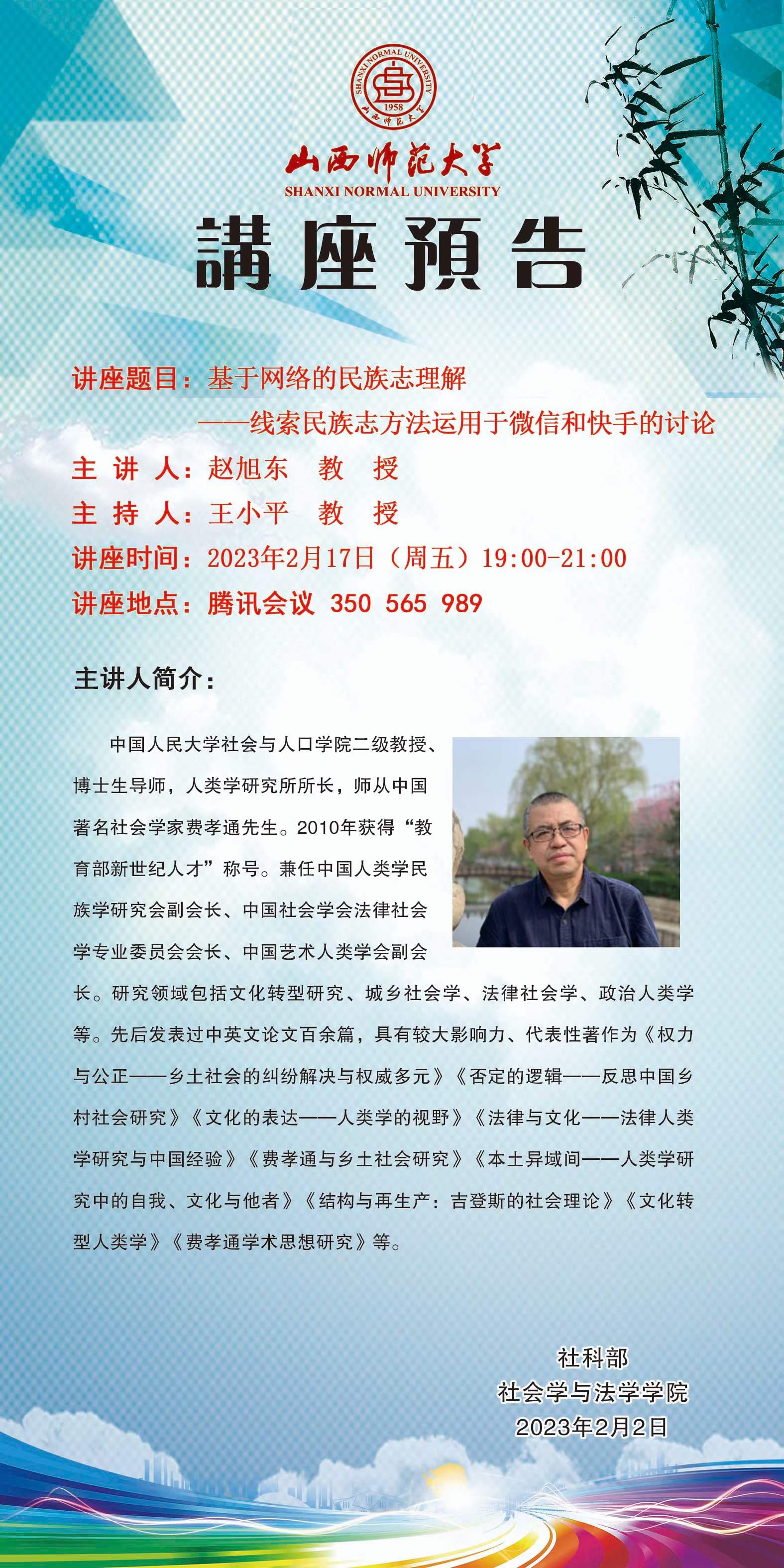 中国人民大学社会与人口学院赵旭东教授应邀请举办视频直播讲座