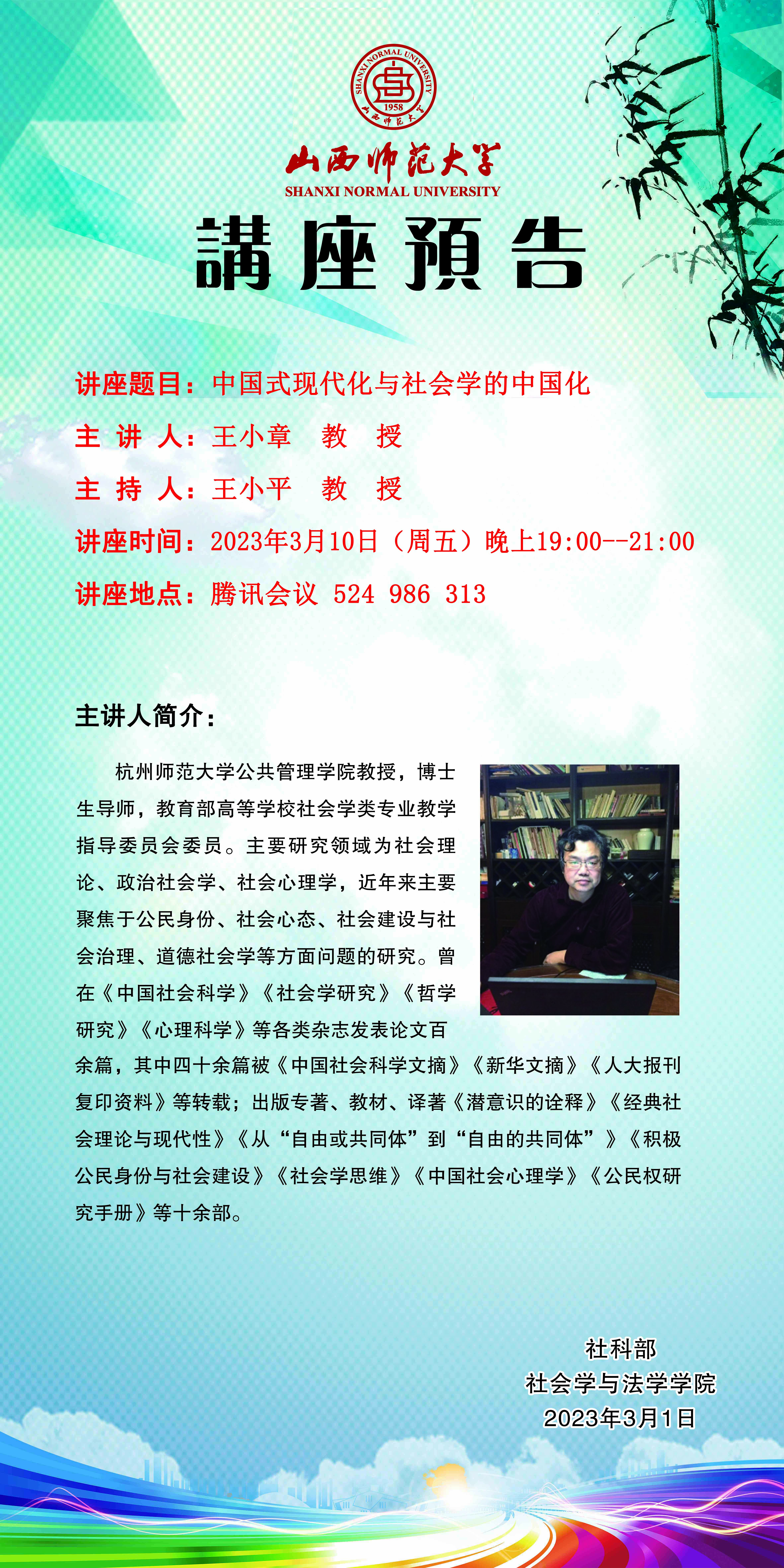 杭州师范大学公共管理学院王小章教授应邀请举办视频直播讲座