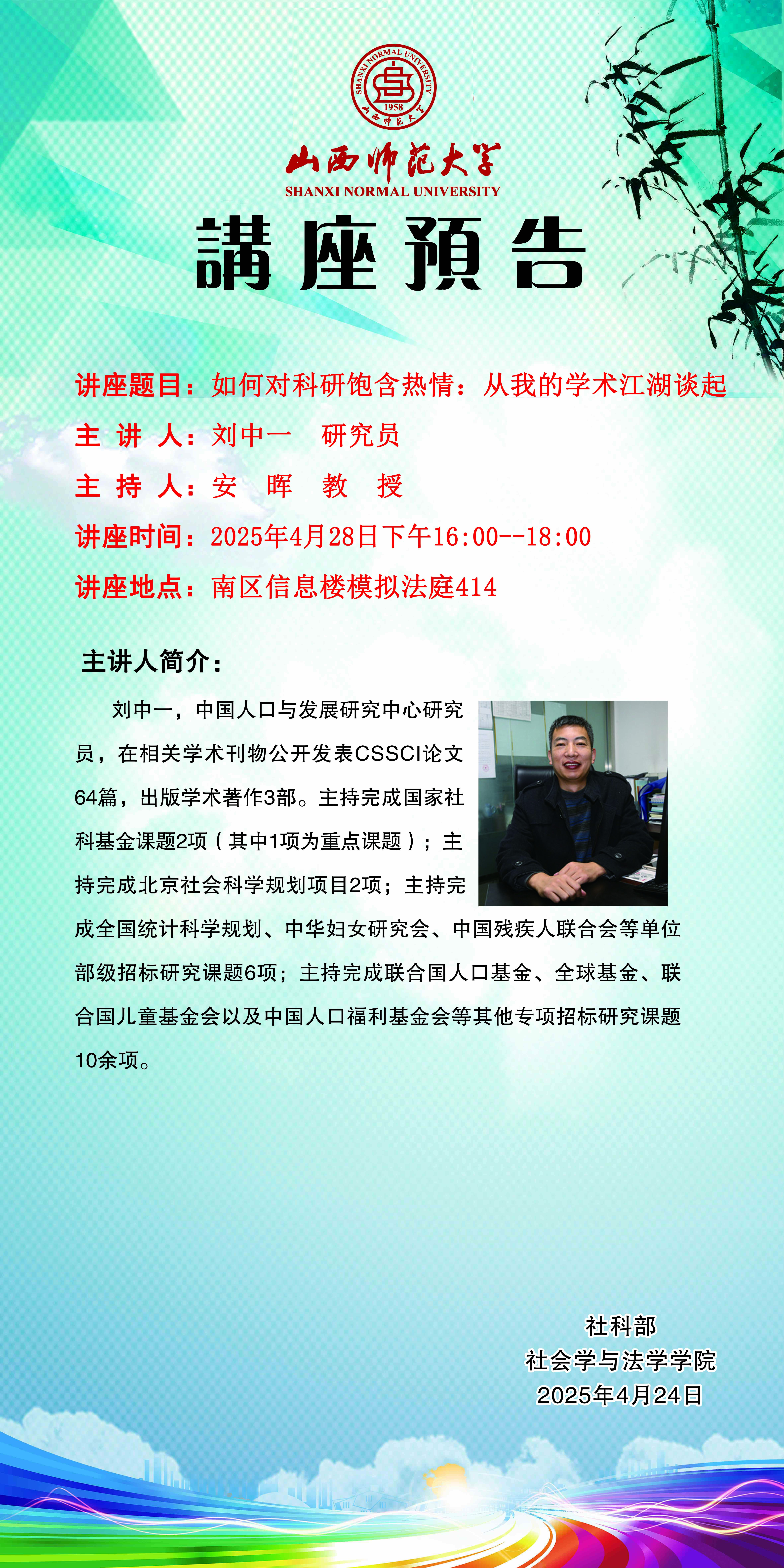 中国人口与发展研究中心刘中一研究员应禁漫屋 邀请做学术报告