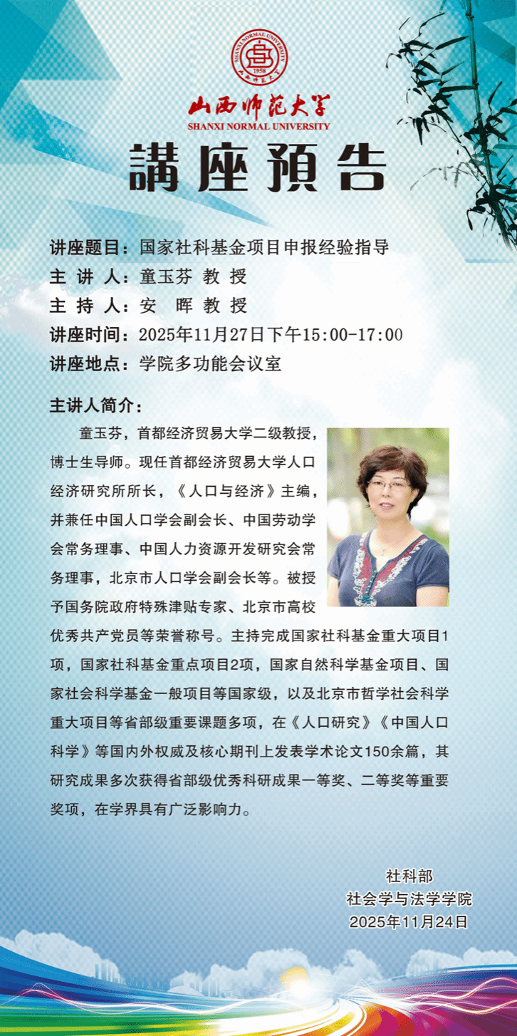 首都经济贸易大学童玉芬教授应禁漫屋 邀请做学术报告